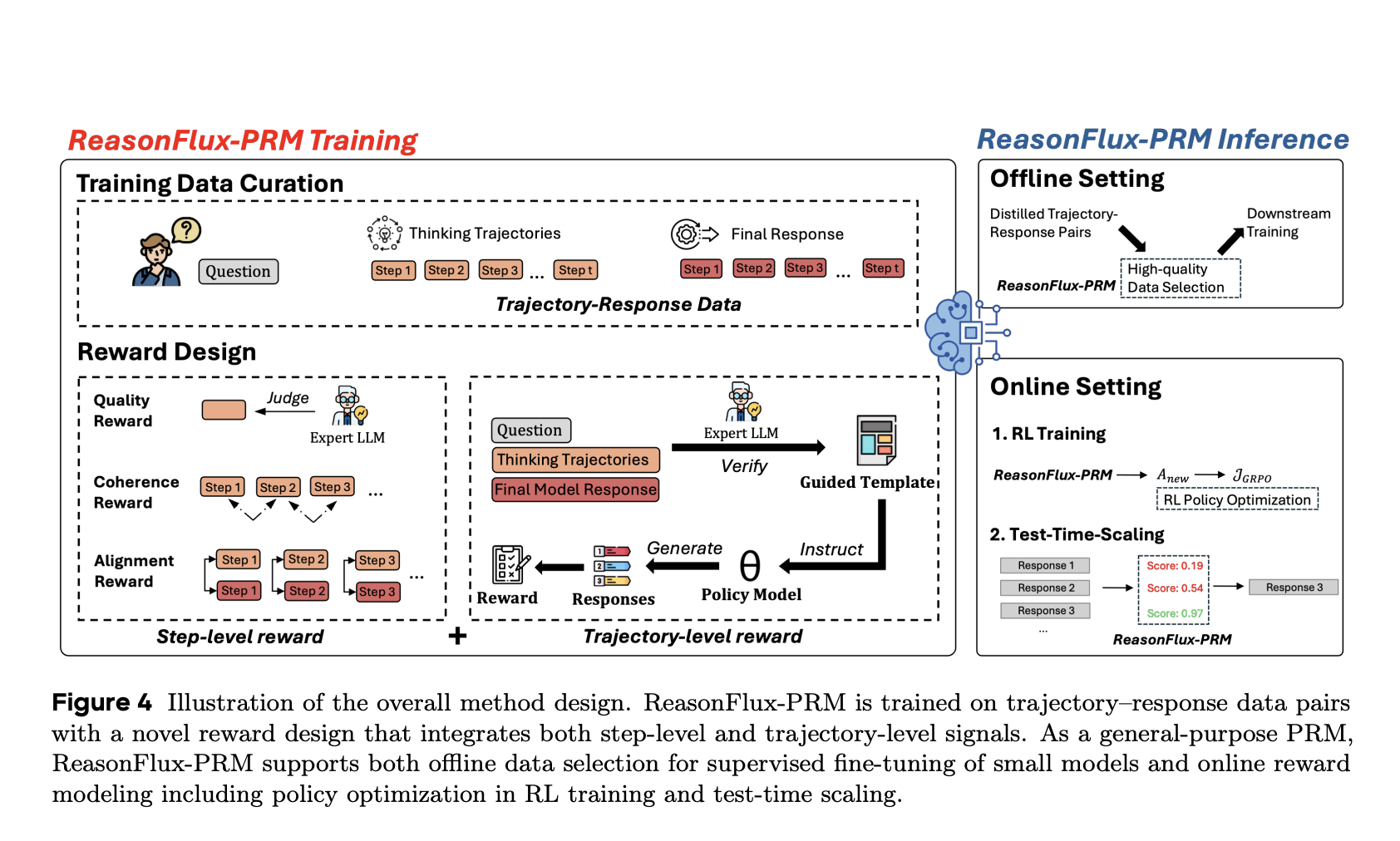 Researchers from the University of Illinois Urbana-Champaign (UIUC), Princeton University, Cornell University, and ByteDance Seed introduced ReasonFlux-PRM. The research introduced ReasonFlux-PRM as a trajectory-aware model that evaluates both intermediate reasoning steps and final answers. It integrates step-level and trajectory-level scoring, enabling a more nuanced understanding of reasoning quality. ReasonFlux-PRM is trained on a 10,000-sample dataset of carefully curated math and science problems explicitly designed to mirror real-world trajectory-response formats.
